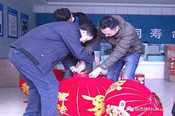 帶著手鉗、改錐、扛著移動(dòng)梯子,拿著燈籠,在大家的密切配合下,將帶著祝福的燈籠掛在辦公樓、廠門衛(wèi)室兩旁。 春節(jié)福利帶回家