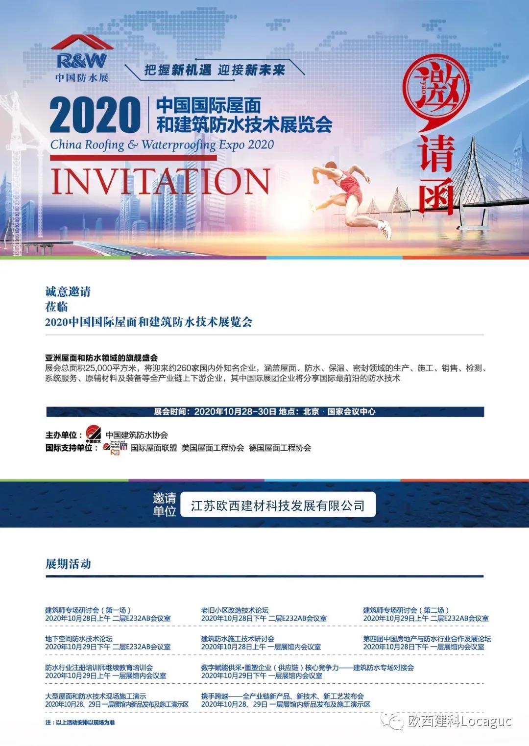 不平凡的2020年,在歷經(jīng)漫長考驗(yàn)后,由中國建筑防水協(xié)會(huì)主辦的2020中國國際屋面和建筑防水技術(shù)展覽會(huì)將如期于10月28日-30日在北京國家會(huì)議中心舉辦。