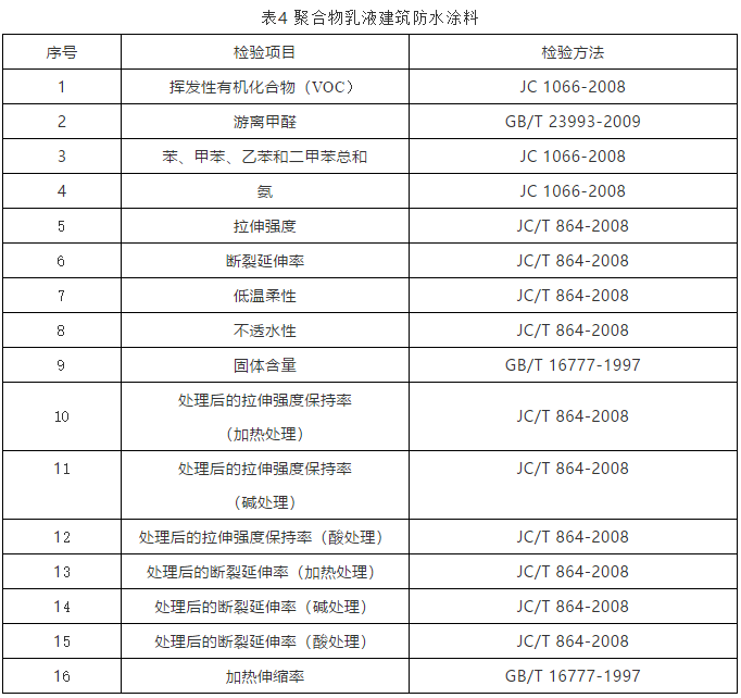3 判定規(guī)則 3.1依據(jù)標(biāo)準(zhǔn) GB/T 19250-2013 聚氨酯防水涂料 GB/T 23445-2009 聚合物水泥防水涂料 JC/T 408-2005 水乳型瀝青防水涂料 JC/T 864-2008 聚合物乳液建筑防水涂料 JC 1066-2008 建筑防水涂料中有害物質(zhì)限量 現(xiàn)行有效的企業(yè)標(biāo)準(zhǔn)、團體標(biāo)準(zhǔn)、地方標(biāo)準(zhǔn)及產(chǎn)品明示質(zhì)量要求 3.2判定原則 經(jīng)檢驗,檢驗項目全部合格,判定為被抽查產(chǎn)品合格;檢驗項目中任一項或一項以上不合格,判定為被抽查產(chǎn)品不合格。 若被檢產(chǎn)品明示的質(zhì)量要求高于本細則中檢驗項目依據(jù)的標(biāo)準(zhǔn)要求時,應(yīng)按被檢產(chǎn)品明示的質(zhì)量要求判定。 若被檢產(chǎn)品明示的質(zhì)量要求低于本細則中檢驗項目依據(jù)的強制性標(biāo)準(zhǔn)要求時,應(yīng)按照強制性標(biāo)準(zhǔn)要求判定。 若被檢產(chǎn)品明示的質(zhì)量要求低于或包含本細則中檢驗項目依據(jù)的推薦性標(biāo)準(zhǔn)要求時,應(yīng)以被檢產(chǎn)品明示的質(zhì)量要求判定。 若被檢產(chǎn)品明示的質(zhì)量要求缺少本細則中檢驗項目依據(jù)的強制性標(biāo)準(zhǔn)要求時,應(yīng)按照強制性標(biāo)準(zhǔn)要求判定。 若被檢產(chǎn)品明示的質(zhì)量要求缺少本細則中檢驗項目依據(jù)的推薦性標(biāo)準(zhǔn)要求時,該項目不參與判定。 (本文來自市場監(jiān)管總局網(wǎng)站) |