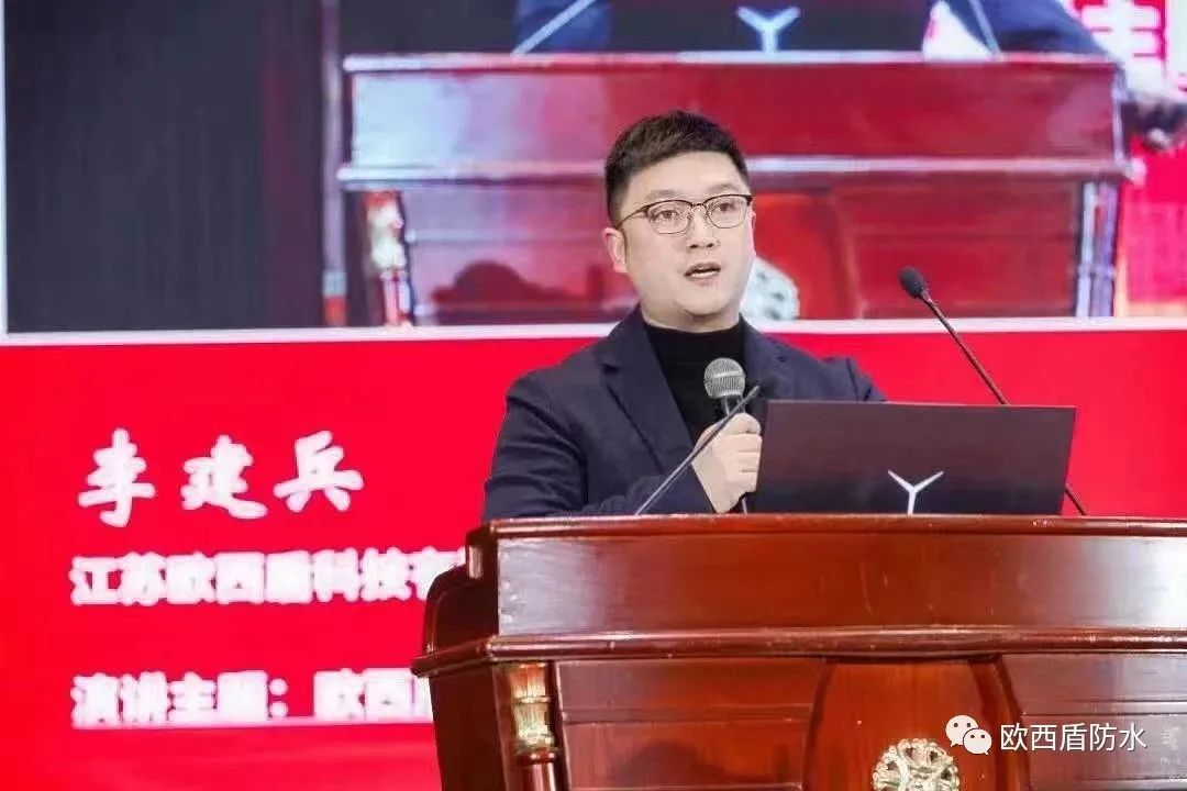在大會的專家論壇&技術(shù)交流階段,聚集了協(xié)會領(lǐng)導(dǎo)與專家、企業(yè)家、工程師和媒體人等,圍繞行業(yè)標(biāo)準(zhǔn)與產(chǎn)品質(zhì)量、新技術(shù)新系統(tǒng)的研發(fā)應(yīng)用、企業(yè)戰(zhàn)略發(fā)展規(guī)劃等熱門話題進(jìn)行深入探討和交流。歐西盾作為大會協(xié)辦單位,蘇北渠道總監(jiān)李建兵應(yīng)邀上臺,作了《歐西盾——高品質(zhì)防水系統(tǒng)服務(wù)商介紹》的主題分享報(bào)告。
