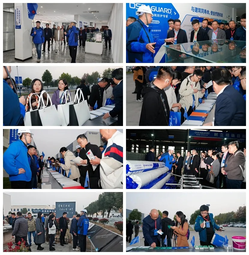 講解人員結(jié)合展廳圖文展板與實(shí)物樣品,系統(tǒng)介紹了歐西盾從深耕高分子防水領(lǐng)域,到研發(fā)全系列防水產(chǎn)品的發(fā)展脈絡(luò)。嘉賓們隨后走進(jìn)現(xiàn)代化生產(chǎn)車間,觀摩了自動化生產(chǎn)線,又在產(chǎn)品展示區(qū)了解了企業(yè)從基礎(chǔ)型卷材到特種場景專用產(chǎn)品的豐富布局與實(shí)力。