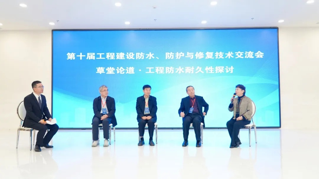 參觀結(jié)束后,大會舉行“歐西盾之夜”歡迎晚宴,并特別設(shè)置“草堂論道”對話環(huán)節(jié),由專委會常務(wù)副秘書長王海龍主持,邀請呂聯(lián)亞、沈春林、曹征富、楊桂玲四位行業(yè)專家同臺對話,圍繞“工程防水耐久性”展開討論。專家們從耐久性影響、材料性能、施工工藝和企業(yè)實(shí)踐四個維度分享觀點(diǎn),一致認(rèn)為:防水不應(yīng)停留在“功能層”,而應(yīng)作為建筑結(jié)構(gòu)的重要組成部分;行業(yè)應(yīng)從“被動堵漏”轉(zhuǎn)向“主動防護(hù)”,從“材料競爭”走向“系統(tǒng)服務(wù)”,更加注重全生命周期的可靠性與經(jīng)濟(jì)性。唯有如此,才能真正支撐“好房子”和“百年建筑”的實(shí)現(xiàn)。