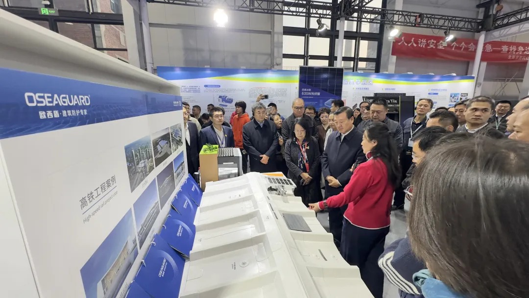 展會(huì)期間,住房和城鄉(xiāng)建設(shè)部黨組書記、部長(zhǎng)倪虹,及相關(guān)領(lǐng)導(dǎo)一行蒞臨歐西盾展位,參觀了品牌核心防水產(chǎn)品TPS鋼塑一體瓦金屬屋面防水系統(tǒng)模型。