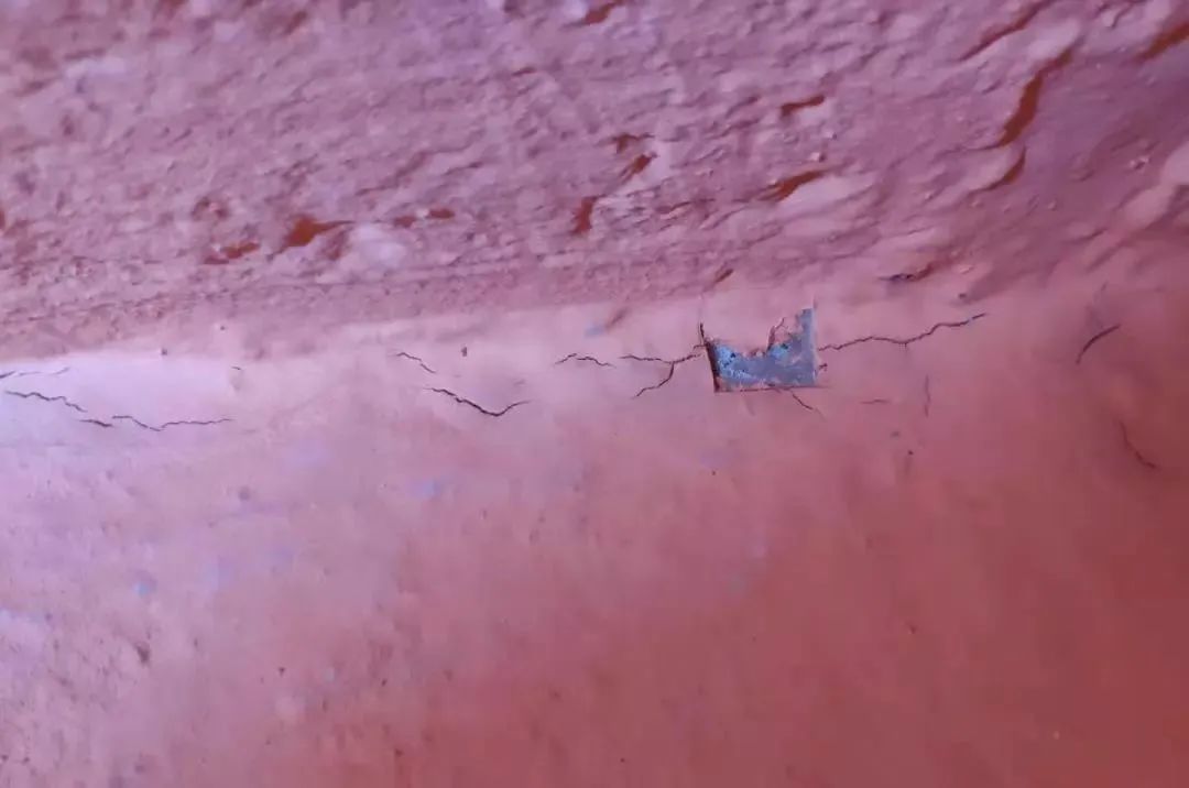 解決方案:施工前應(yīng)對(duì)基層進(jìn)行檢查,對(duì)基層存在空洞、裂縫等各種缺陷應(yīng)提前進(jìn)行修補(bǔ);防水施工應(yīng)遵循薄涂多遍的原則,單次涂刷厚度不宜過(guò)厚;避免堆料。