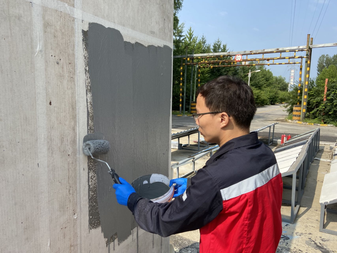 ⑦當(dāng)涂膜出現(xiàn)氣泡、皺折不平、凹陷、刮痕等情況,應(yīng)立即進(jìn)行修補(bǔ)。補(bǔ)好后才能進(jìn)行下一道涂膜施工。