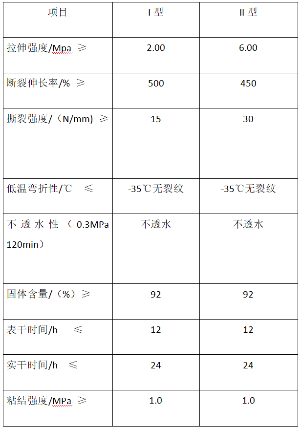 · 粘結(jié)力強、延伸率大、抗拉強度高、彈性好能在不規(guī)則的復(fù)雜基面上施工。